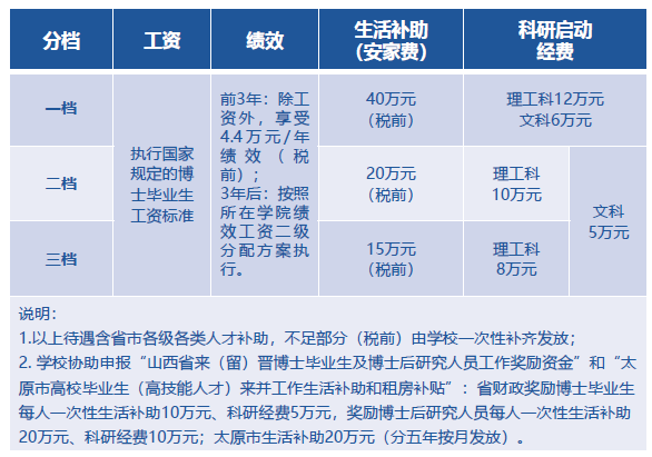 (2)岗位待遇:根据学术评价划分为三档,详见下表。