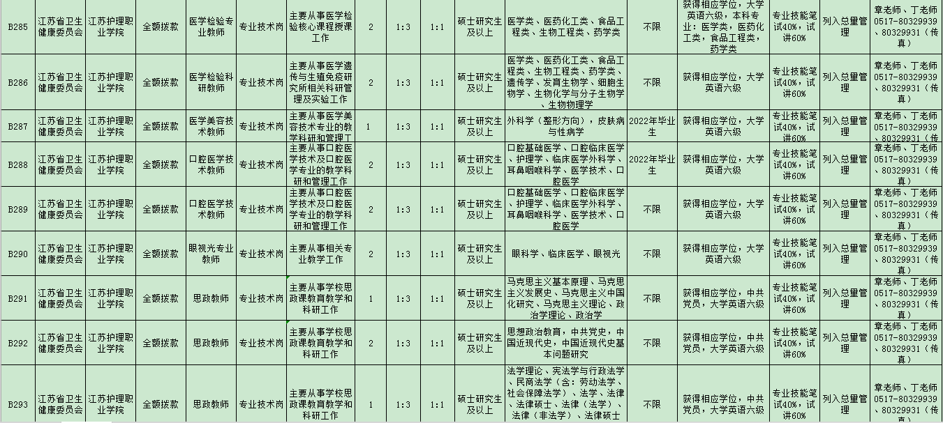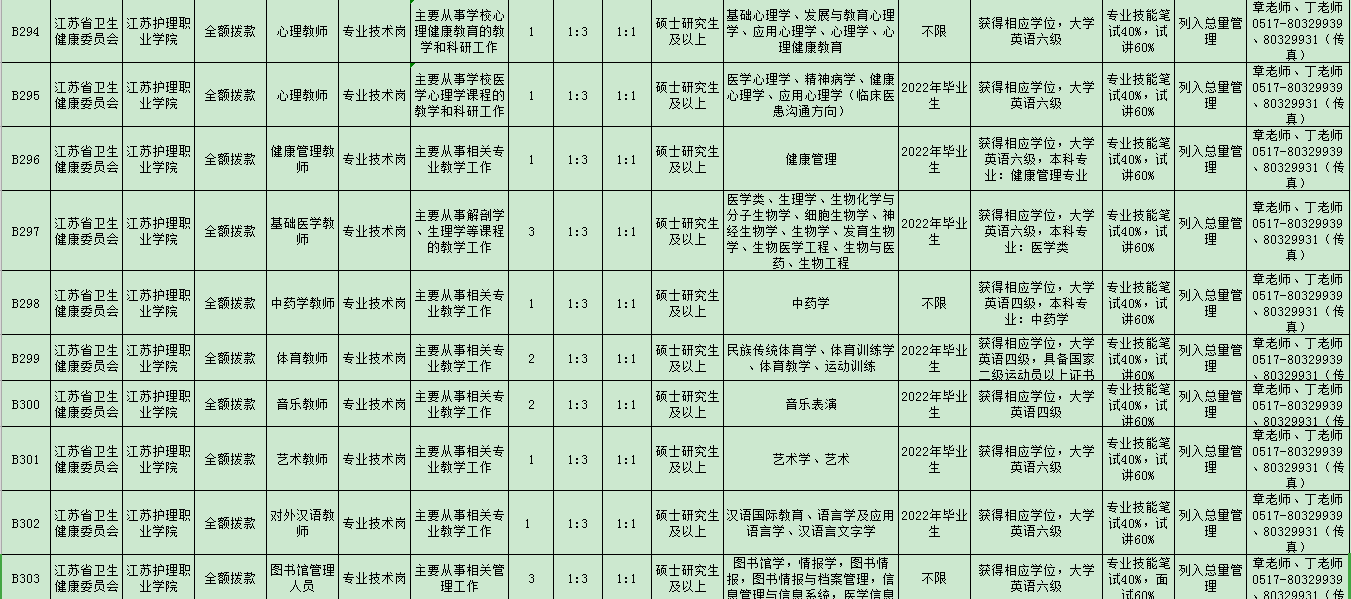 附件:江苏护理职业学院2022年公开招聘工作人员岗位表