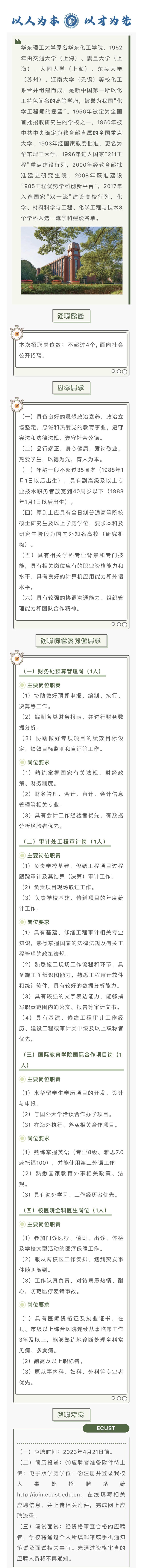 华东理工大学2023年春季职能部门专门技术岗位招聘启事