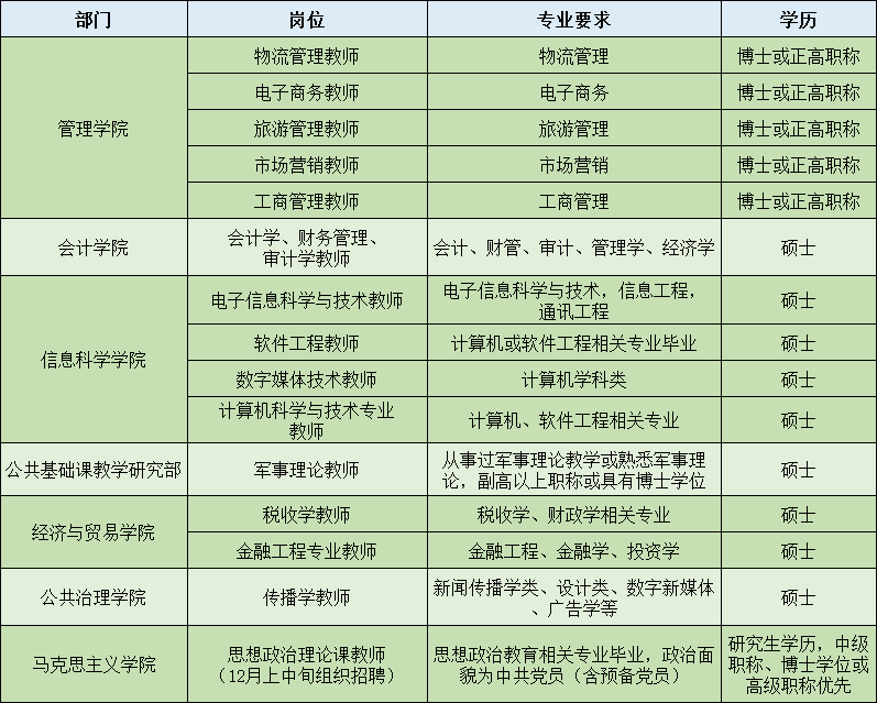 因学院发展需要,竭诚欢迎社会优秀人才任职我院。招聘职位及要求如下: